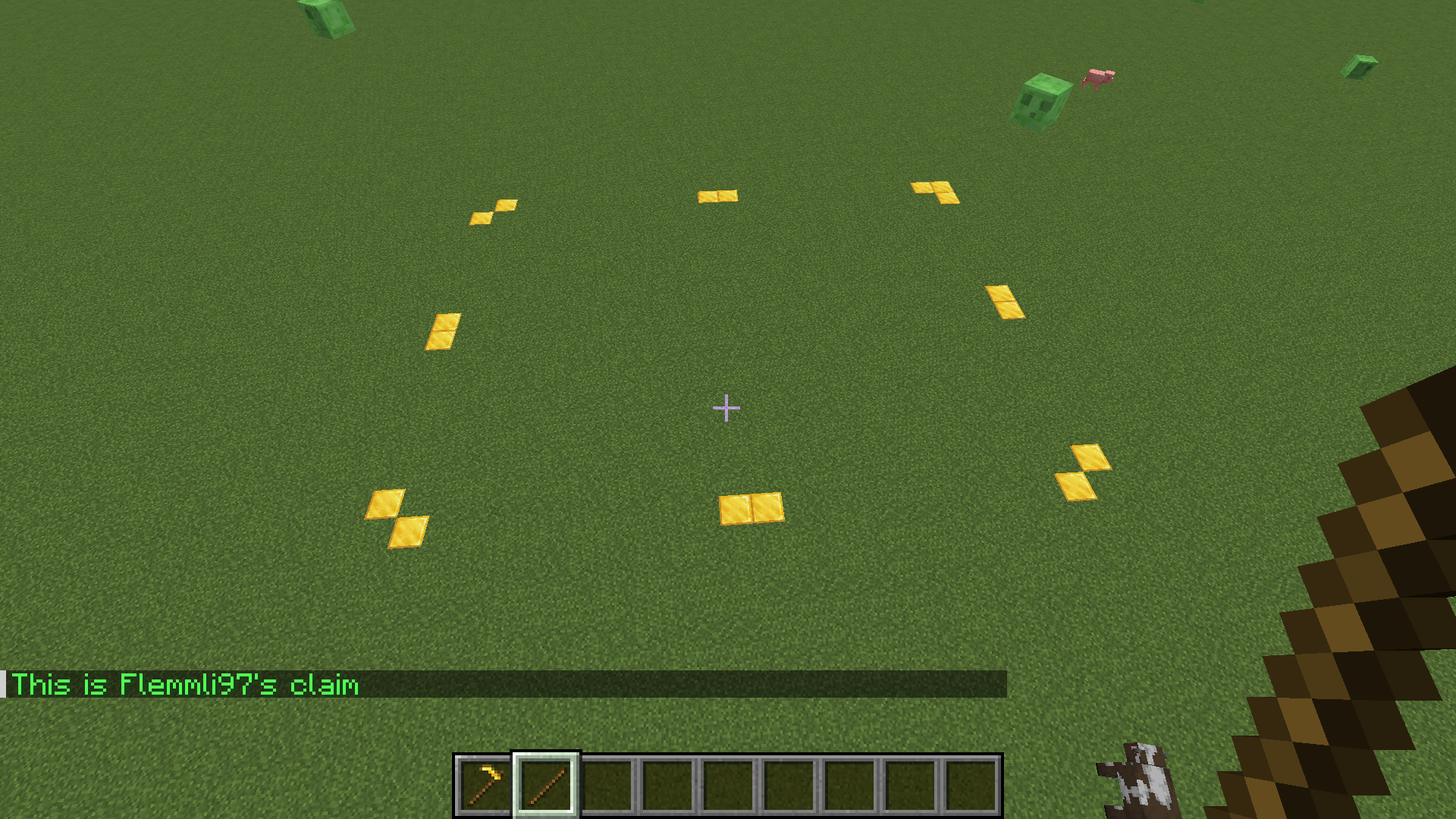 To create a claim now right click on one block to select a corner and on another block to set the other corner. If it was successful you will get a message that a claim was created, else it will tell you why the creation failed. Alternatively you can also use the command /flan addClaim to do that if by some reason you prefer that method.